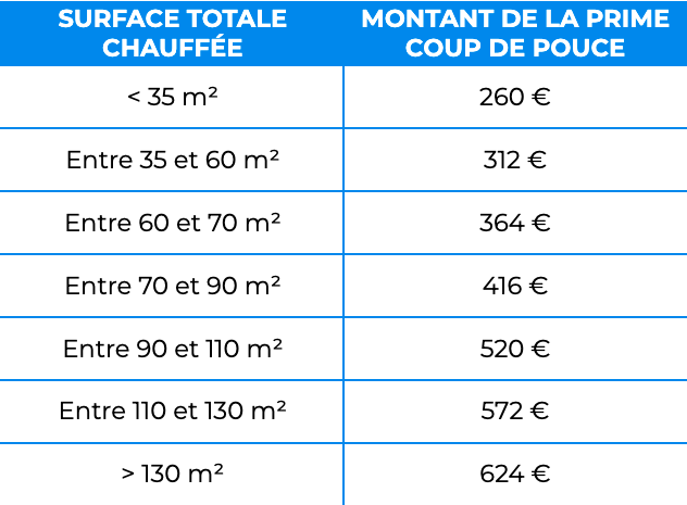 Le montant de la nouvelle prime « Coup de Pouce Pilotage Connecté du Chauffage Pièce par Pièce » varie en fonction de la superficie des surfaces chauffées.